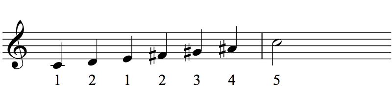 Just as its name suggests each note in this scale is one whole note apart. Because of this and its lack of leading tone, no single note stands out. Again, thanks to there being only 12 notes there are only two whole-tone scales: